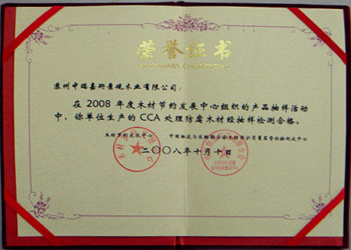 我公司在2013年在中國木材保護工業協會進行的產品抽檢活動中,依據GB/T22102-2008標準要求檢測進過處理過的CCA、ACQ防腐木,達到C3級要求。