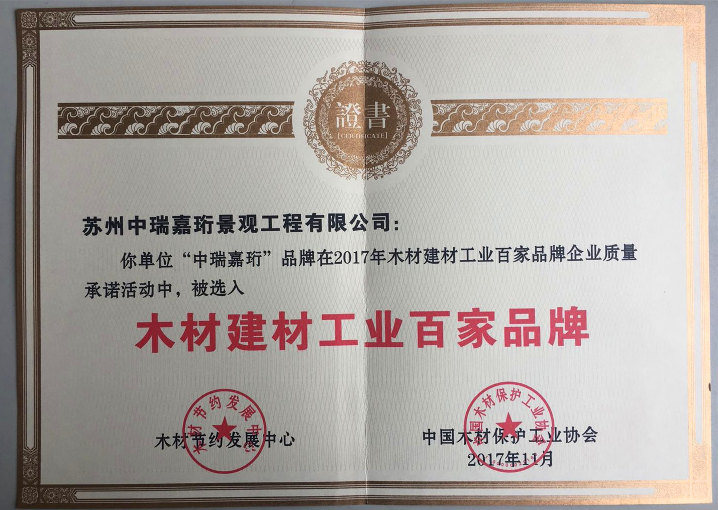 03 榮獲2017年中國木材保護協會頒發《木材建材工業百家品牌》 [2017-12-07] 4732